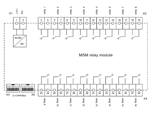 MSM Relämodul passar både till USM och BSM, och är ett tillbehör som fungerar till en fristående larmpanel från storlek 8-48, men ej tillsammans med en systemlösning som innehåller flera slavar.